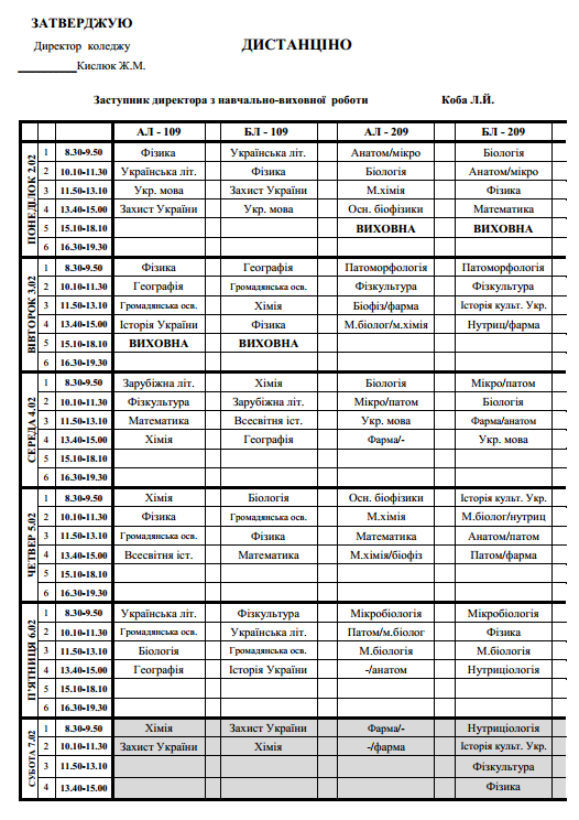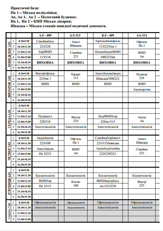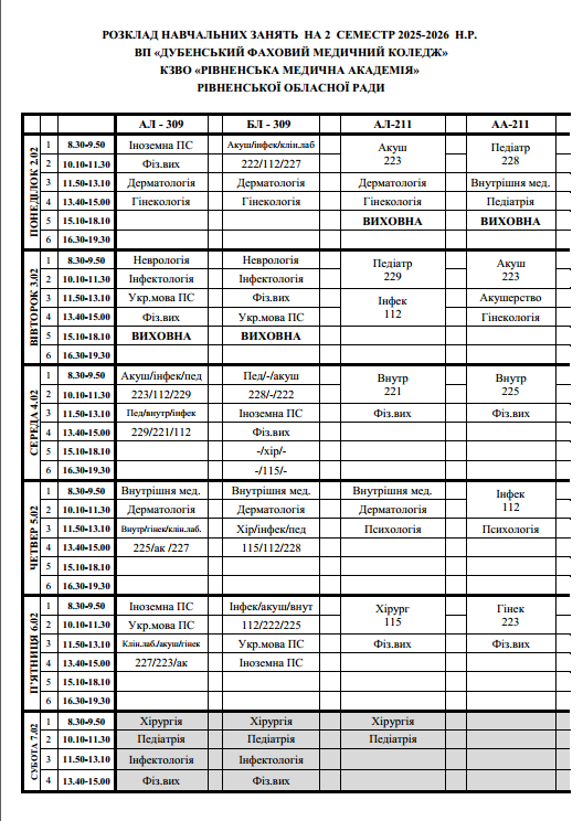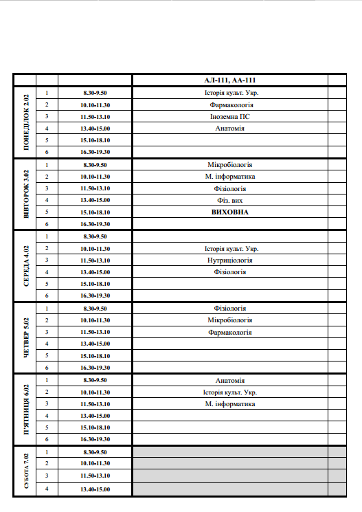 РОЗКЛАД 2.02-7.02.2026