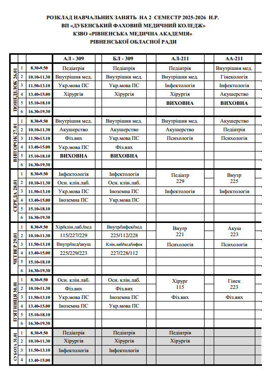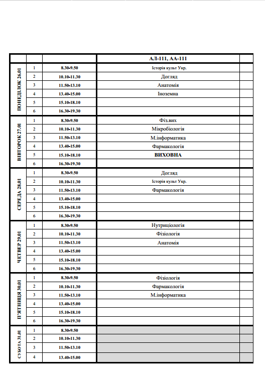 РОЗКЛАД 26.01-31.01.2026