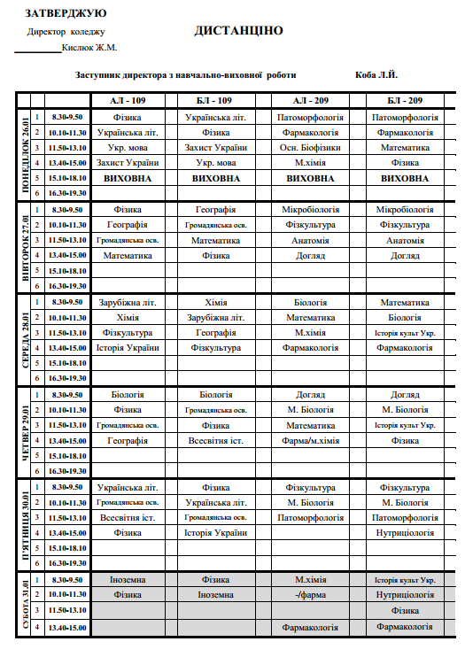 Графік освітнього процесу