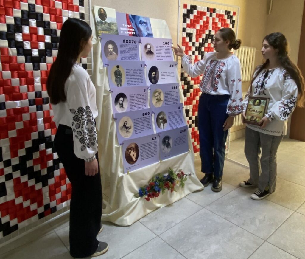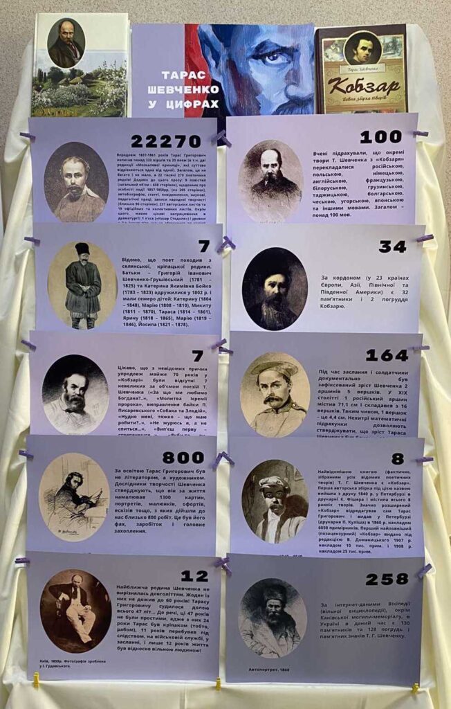 Впродовж тижня студенти, викладачі та гості закладу мали змогу ознайомитися з виставкою «Тарас Шевченко у цифрах», в матеріалах якої були представлені маловідомі факти про життя та творчість Тараса Григоровича, а також всім відомі істини про непересічний талант Кобзаря.