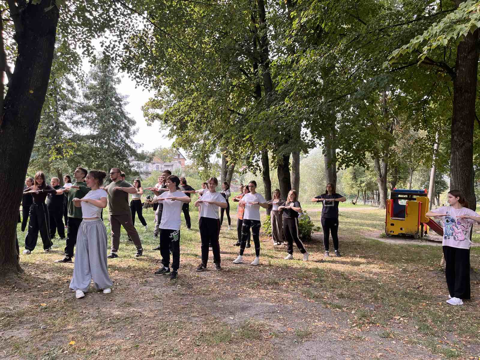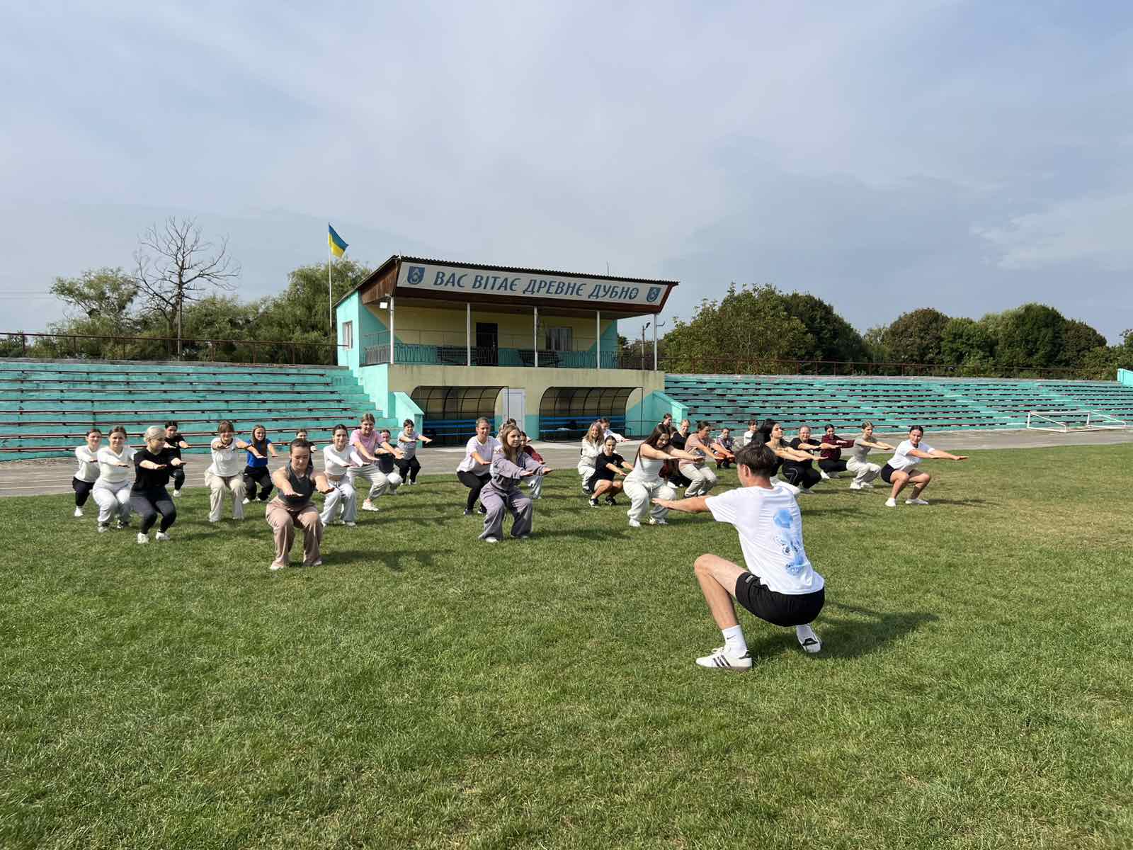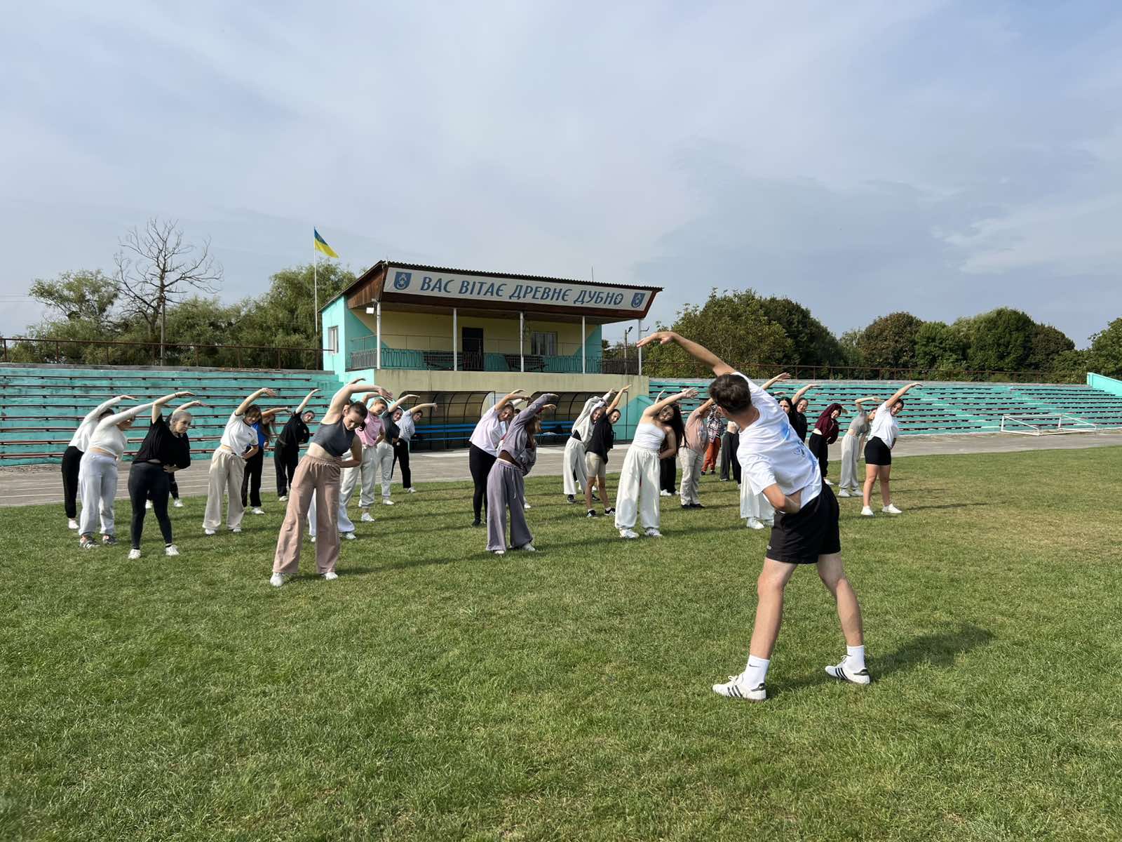 Для активізації фізкультурно-оздоровчої та спортивно-масової роботи, пропагування здорового способу життя, залучення студентської молоді до систематичних занять фізичною культурою та спортом, в рамках Всеукраїнського флешмобу «Рух – наше здоров’я!» в Дубенському фаховому медичному коледжі викладачами фізичного виховання Фиком М.М. та Леньо В.Я. зі студентами ІІІ-ІV курсів було проведено спортивну руханку.