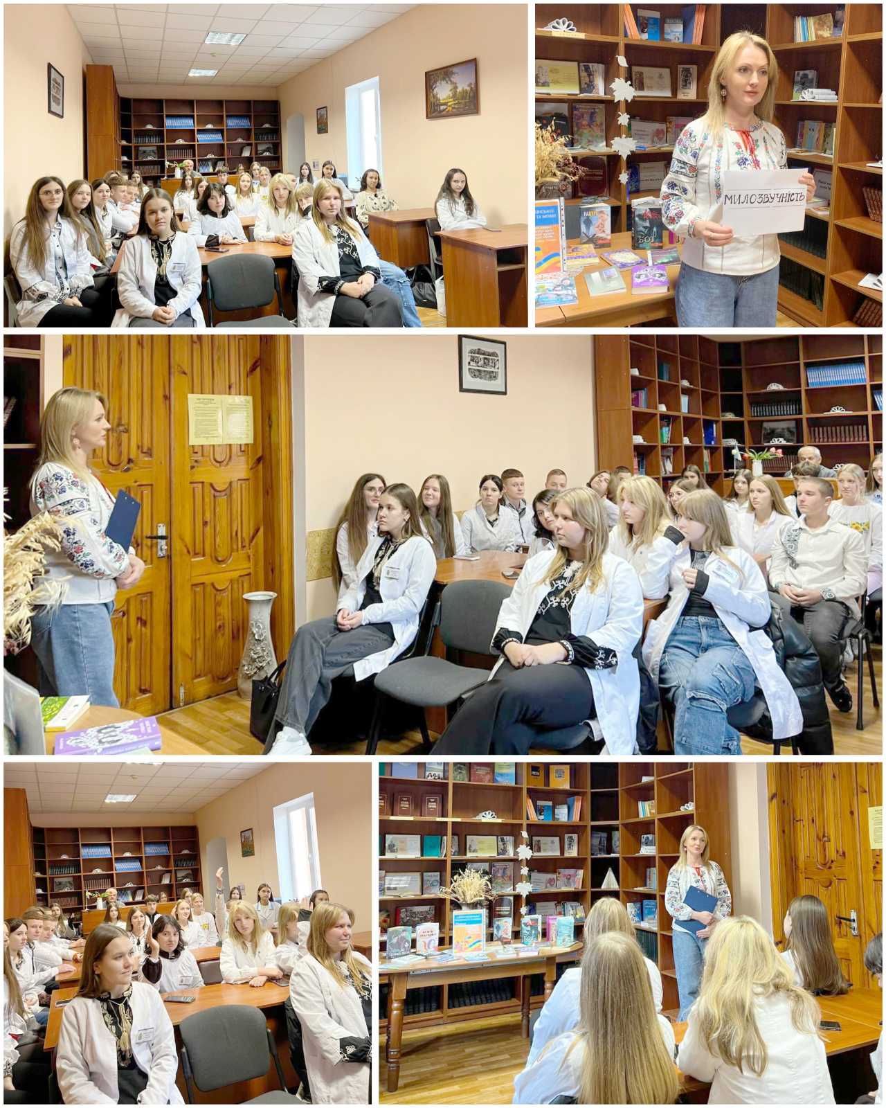 27 жовтня у Дубенському фаховому медичному коледжі відбулась виховна година для першокурсників, присвячена Дню української писемності та мови. Бібліотекар коледжу розповіла цікаві факти про українську мову — одну з наймилозвучніших у світі, про її походження, розвиток і красу слова. Студенти БЛ -109 курсу із захопленням взяли участь в інтелектуальній вікторині, перевірили знання орфографії, фразеологізмів і прислів’їв.