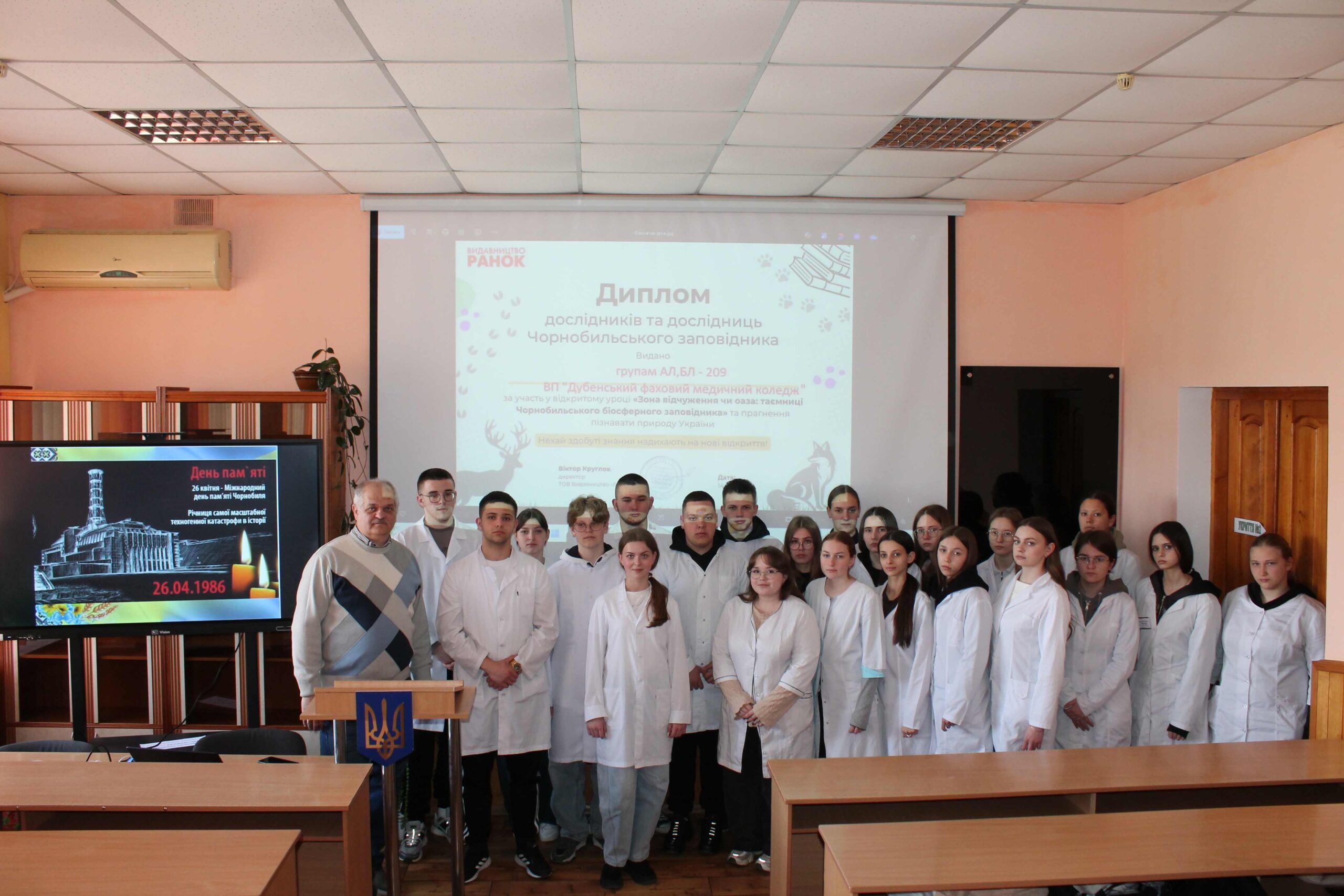 14 квітня 2026 року студенти АЛ та БЛ – 209 курсу з викладачем навчальної дисципліни «Основи біологічної фізики та медична апаратура» Анатолієм КОКОРСЬКИМ брали участь у відкритому уроці «Зона відчуження чи оаза: таємниці Чорнобильського біосферного заповідника», який проводився у форматі онлайн-конференції ,  організованої видавництвом «Ранок». Під час уроку студенти дізнались про історію Чорнобильського заповідника та передумови його створення, новини про роботу  заповідника сьогодні та хто працює в зоні відчуження, дослідження впливу радіації, збереження екосистем і наукову діяльність, сучасні дослідження та фотопастки, які допомагають вивчати природу зони відчуження, вплив окупації та процеси відновлення.