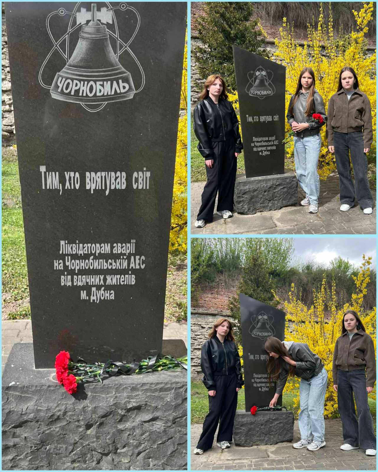 Чорнобиль — це не лише сторінка в підручнику, а зона нашої національної трагедії. Нехай ніколи не замовкають дзвони людської пам’яті, що не даватимуть забути про трагедію. Відкритою раною нашої землі є сьогодні Чорнобиль – пам’ятаймо про це.