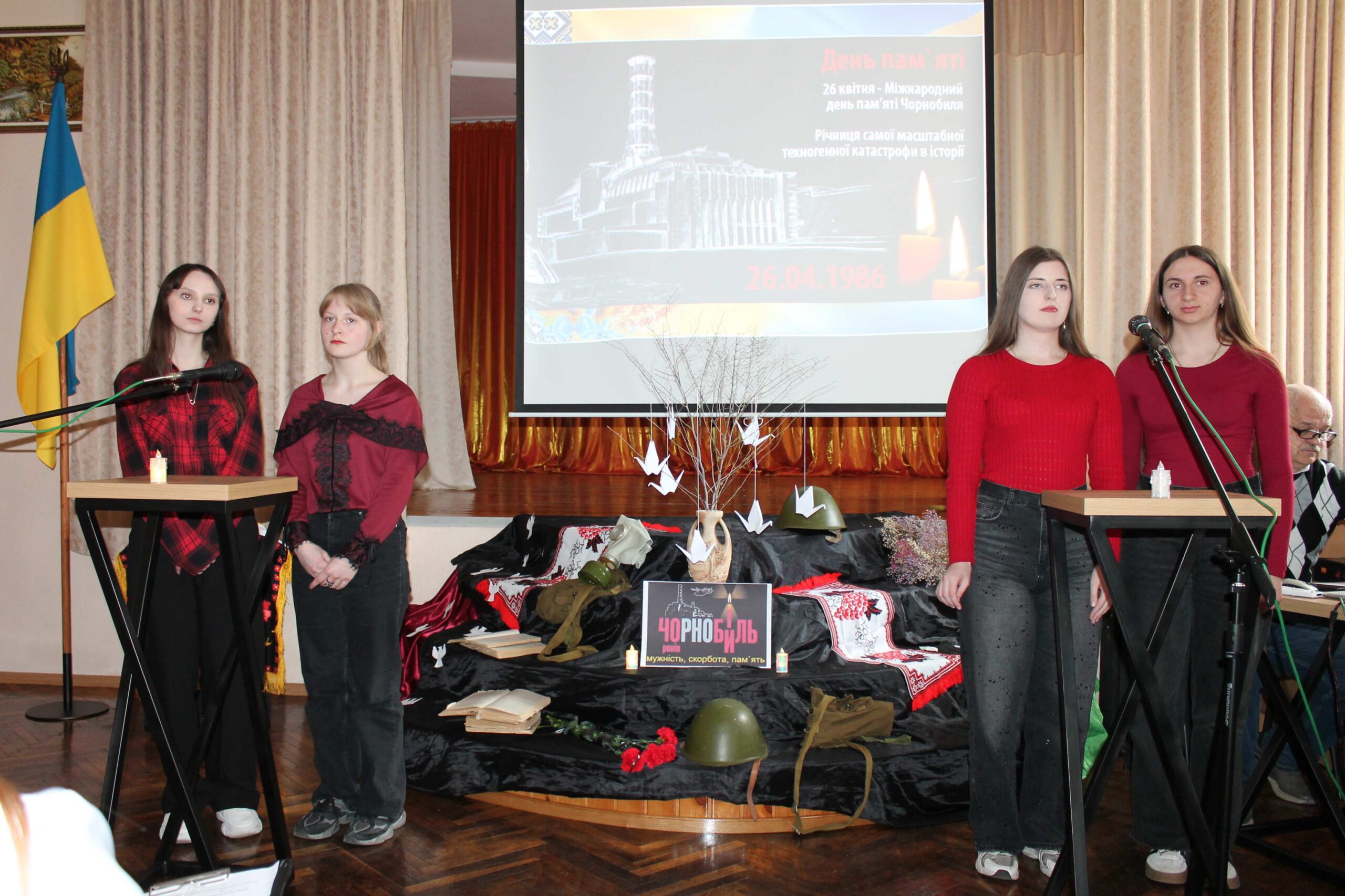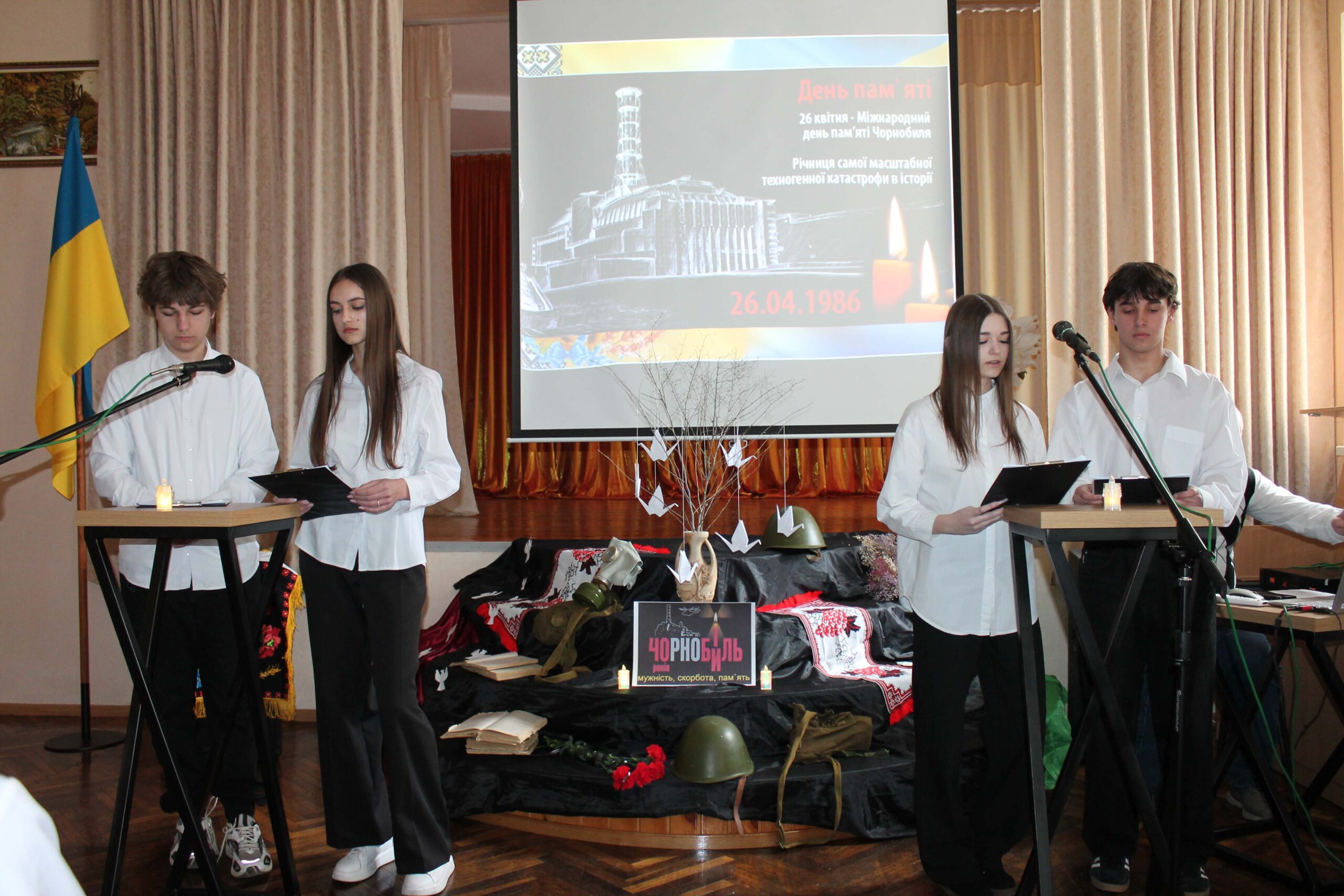 З метою вшанування подвигу учасників ліквідації наслідків аварії на Чорнобильській АЕС, пам’яті жертв цієї катастрофи для студентів I-II курсів було проведено виховний захід «Чорнобиль – мужність, скорбота, памʼять», який підготували керівник академічної групи БЛ-109 Анатолій КОКОРСЬКИЙ та здобувачі освіти БЛ-109 курсу.